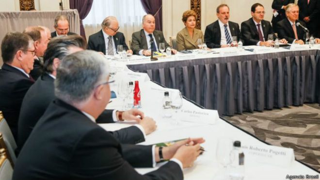 No primeiro dia de atividades em sua visita aos EUA, a presidente recebeu os empresários brasileiros em uma reunião no hotel St. Regis, onde está hospedada em Nova York.